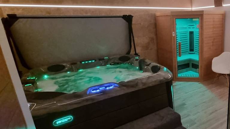 Die Unterkunft bietet verschiedene Wellnesseinrichtungen, darunter eine Sauna und einen Whirlpool. Es stehen Gartenmöbel zur Verfügung, um die Außenbereiche zu genießen.