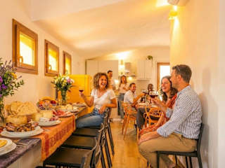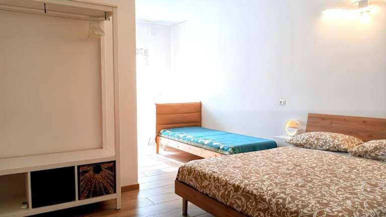Die Ferienwohnung besteht aus fünf Schlafzimmern, die mit eigenen Badezimmern ausgestattet sind, sowie einem Wohnzimmer. Die Küche beinhaltet einen Kühlschrank und einen Wasserkocher. In den Badezimmern sind Bidets und Duschen vorhanden. Handtücher und Bettwäsche werden zur Verfügung gestellt.