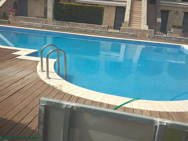 Die Ferienwohnung ist mit 2 Schlafzimmern, 1 Badezimmer, Bettwäsche, Handtüchern, einem Flachbild-TV, einem Essbereich, einer voll ausgestatteten Küche und einer Terrasse mit Poolblick ausgestattet.