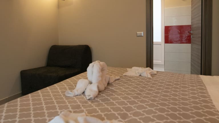 Die klimatisierten Zimmer im Hotel La Madonnina sind modern und komfortabel eingerichtet. Jedes Zimmer verfügt über einen Schreibtisch, einen Flachbild-TV und ein eigenes Badezimmer. Bettwäsche, Handtücher und ein Balkon mit Stadtblick sind ebenfalls vorhanden. Ein Kleiderschrank bietet ausreichend Stauraum für Ihre persönlichen Gegenstände.