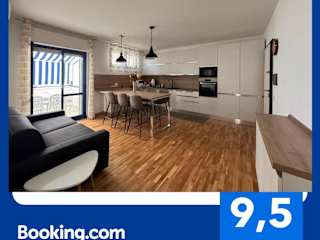 Die Zimmer umfassen zwei Schlafzimmer und ein Badezimmer. Die Unterkunft bietet auch Annehmlichkeiten wie Bettwäsche, Handtücher, einen Essbereich, einen Flachbild-TV sowie eine voll ausgestattete Küche.