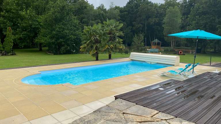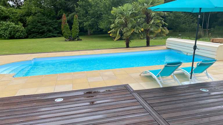 In der Nähe des Ferienhauses besteht die Möglichkeit zum Angeln. Der saisonale Außenpool lädt zum Schwimmen und Entspannen ein. Die schöne Terrasse und der Garten bieten zusätzlichen Raum zum Erholen und Genießen der Natur.