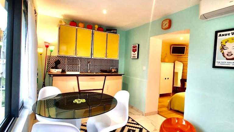Das klimatisierte Apartment im La Maison Pop Appartement meublé indépendant avec jardin bietet Ihnen einen angenehmen Aufenthalt. Das Apartment verfügt über ein Schlafzimmer, einen Flachbild-TV, einen Essbereich und eine voll ausgestattete Küche mit Kühlschrank und Mikrowelle. Handtücher und Bettwäsche werden gestellt, um Ihnen den Aufenthalt so bequem wie möglich zu machen.