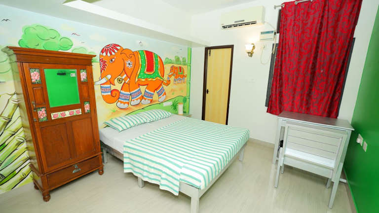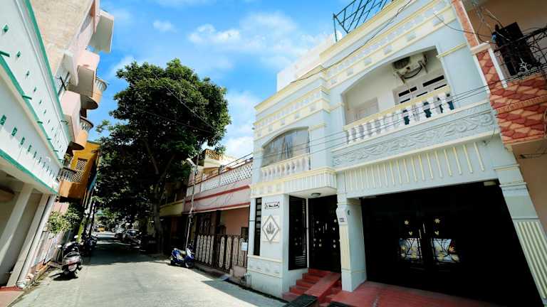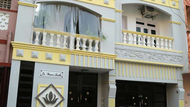 Das La Maison Radha home stay in Pondicherry bietet eine komfortable Unterkunft mit kostenfreiem WLAN und einer zuverlässigen Stromversorgung. Die klimatisierten Zimmer sind mit Ventilatoren, eigenen Bädern und Safes ausgestattet. Das Bed & Breakfast verfügt über einen schönen Garten, eine Terrasse und eine Gemeinschaftsküche. Zusätzliche Annehmlichkeiten wie Kunst- und Kulturaktivitäten, ein Tourenschalter, eine Gepäckaufbewahrung und Wäschemöglichkeiten machen den Aufenthalt noch angenehmer. Die zentrale Lage ermöglicht es den Gästen, den Busbahnhof, den Bahnhof und den Botanischen Garten bequem zu Fuß zu erreichen. Der Flughafen Puducherry ist ebenfalls nur 6,2 km entfernt.