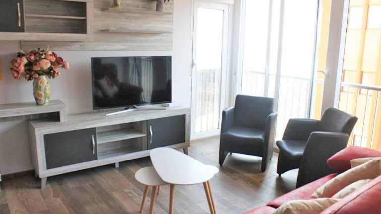 Die Ferienwohnung bietet eine moderne Ausstattung mit 3 Schlafzimmern, einem Wohnzimmer, einer voll ausgestatteten Küche (inklusive Kühlschrank und Kaffeemaschine) sowie zwei Badezimmern mit Bidet und Dusche. Handtücher und Bettwäsche sind vorhanden.