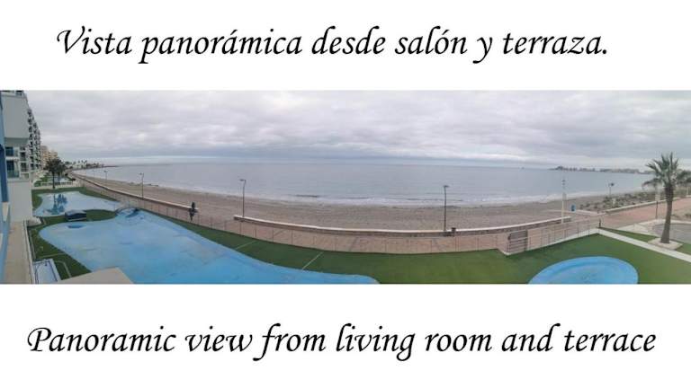 LA MANGA MAR MENOR - Urb MAR AZUL, 2, Primer piso 1B bietet eine Ferienwohnung mit kostenlosem WLAN und Meerblick. Die Unterkunft umfasst einen saisonalen Außenpool, einen eigenen Strandbereich und eine Sonnenterrasse. Die Ferienwohnung wird von einem privaten Gastgeber geführt und es sind keine Festlichkeiten wie Junggesellenabschiede gestattet.
