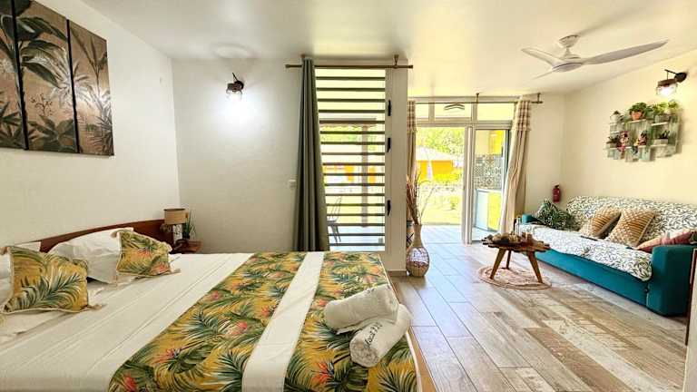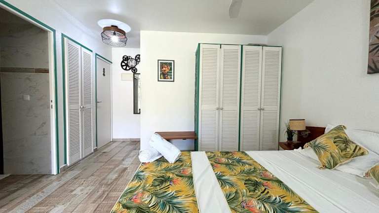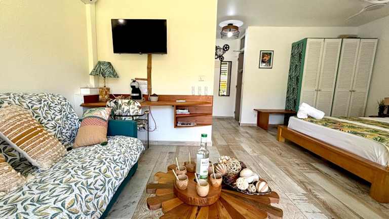 Das klimatisierte Apartment im Un petit coin de paradis ist komfortabel und gemütlich eingerichtet. Es besteht aus einem Schlafzimmer, einem Wohnzimmer und einer voll ausgestatteten Küchenzeile mit einem Kühlschrank und einer Kaffeemaschine. Das Badezimmer ist mit einer Dusche und einem Haartrockner ausgestattet. Handtücher und Bettwäsche werden gestellt, um Ihren Aufenthalt so angenehm wie möglich zu gestalten.