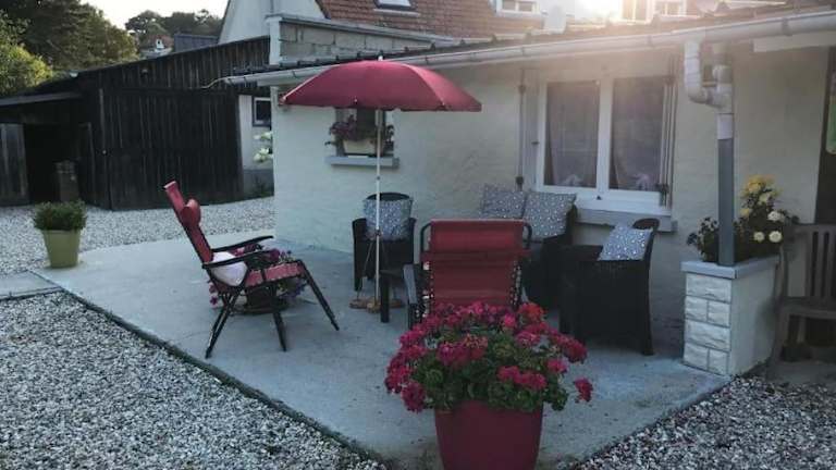 La mer poules proche plage ist eine Unterkunft mit einer Terrasse und Blick auf den Garten. Die Unterkunft bietet einen Garten sowie kostenlosen Privatparkplatz für die Gäste.