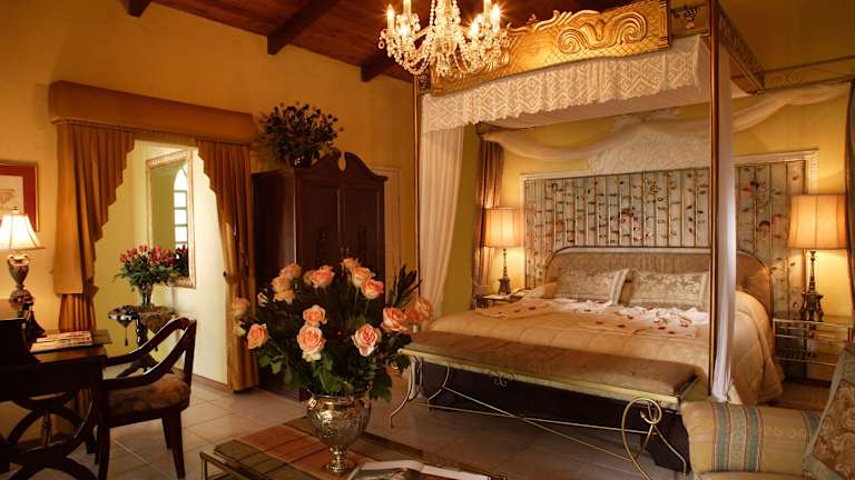 Die klassischen Suiten des La Mirage Garden Hotel & Spa sind im antiken Stil mit Möbeln und Kristallleuchtern dekoriert. Jedes Zimmer bietet einen geräumigen Sitzbereich mit frischen Schnittblumen, kostenfreies WLAN und einen gemütlichen Kamin.