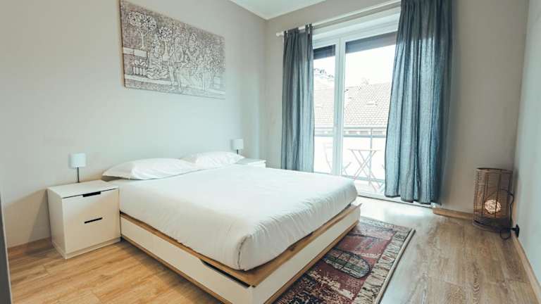 Die Ferienwohnung ist klimatisiert und verfügt über 2 Schlafzimmer, ein Wohnzimmer und eine voll ausgestattete Küche mit Kühlschrank und Wasserkocher. Das Badezimmer beinhaltet ein Bidet und eine Dusche. Handtücher und Bettwäsche werden bereitgestellt.
