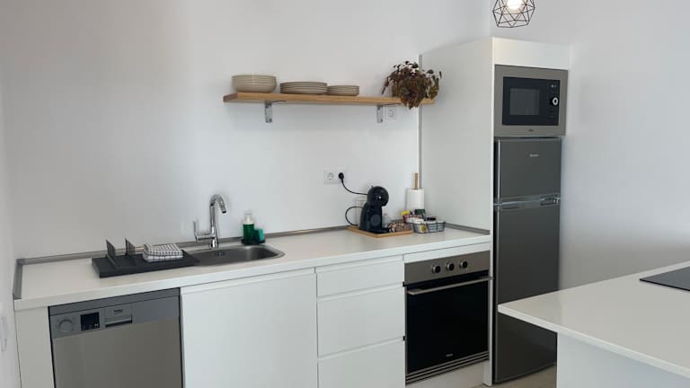 Die Ferienwohnung verfügt über zwei Schlafzimmer, ein Wohnzimmer und eine voll ausgestattete Küche mit Kühlschrank und Kaffeemaschine. Ein Badezimmer mit Dusche und kostenlosen Pflegeprodukten ist vorhanden. Handtücher und Bettwäsche werden bereitgestellt, und alle Zimmer sind klimatisiert. Die Unterkunft bietet zudem eine Sonnenterrasse und Zugang zu einem Pool mit Blick.