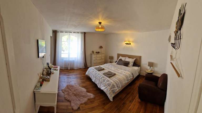 Die Privatunterkunft im Hotel La Mouline verfügt über einen Flachbild-Kabel-TV und bietet Handtücher und Bettwäsche für einen komfortablen Aufenthalt. Genießen Sie den Blick auf den Garten und fühlen Sie sich wie zu Hause in dieser gemütlichen Unterkunft.