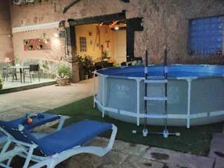 Das La Palmera de la Insula in Cabañas de Ebro bietet Ihnen eine komfortable Unterkunft mit kostenfreiem WLAN und einem Poolblick. Genießen Sie Ihren Aufenthalt in dieser idyllischen Umgebung mit einem saisonalen Außenpool, einem Garten und einer Terrasse. Der Ferienhof verfügt über klimatisierte Zimmer mit 4 Schlafzimmern, einem Wohnzimmer, einer voll ausgestatteten Küche und 2 Badezimmern. Zusätzlich gibt es einen Grill und die Möglichkeit, Fahrräder auszuleihen oder ein Auto zu mieten. Die Lage des Ferienhofs ermöglicht Aktivitäten wie Wandern, Angeln und Radfahren. Der Flughafen Saragossa ist nur 33 km entfernt und die Expo Zaragoza 2008 erreichen Sie nach 34 km.