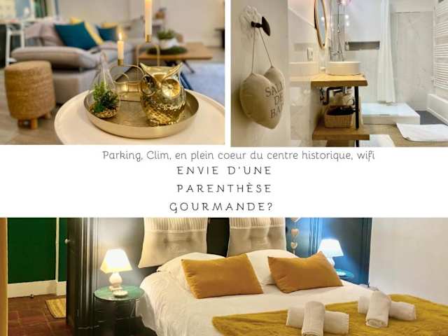 Das klimatisierte Apartment im La parenthèse gourmande avec clim et parking bietet Ihnen jeglichen Komfort, den Sie für einen angenehmen Aufenthalt benötigen. Das Apartment verfügt über ein Schlafzimmer, ein Wohnzimmer, eine voll ausgestattete Küche mit Kühlschrank und Kaffeemaschine sowie ein modernes Badezimmer mit Dusche und kostenlosen Pflegeprodukten. Handtücher und Bettwäsche werden Ihnen zur Verfügung gestellt, um Ihnen einen sorglosen Aufenthalt zu ermöglichen.