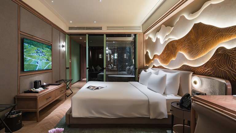 Die Zimmer sind mit Teppichböden ausgestattet und verfügen über eine individuelle Klimaanlage, Heizung, Ventilator sowie ein Kingsize-Bett. Zur Ausstattung gehören ein Safe, eine Minibar, ein Schreibtisch, eine Tee-/Kaffeemaschine, ein Bügelset sowie ein TV-Gerät mit Satelliten-/Kabelempfang. Die Badezimmer sind mit einer Dusche, Badewanne, Haartrockner, Bademänteln und Kosmetikartikeln ausgestattet. Hausschuhe sind ebenfalls vorhanden. Zudem stehen Familien- und Nichtraucherzimmer zur Verfügung.
