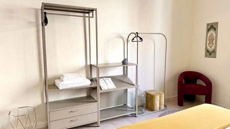 Die Ferienwohnung besteht aus einem Schlafzimmer und bietet einen Flachbild-TV. Die voll ausgestattete Küche enthält einen Kühlschrank. Ein Sitzbereich, eine Waschmaschine sowie ein Badezimmer mit Bidet und Dusche sind ebenfalls vorhanden.