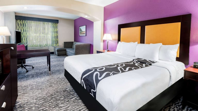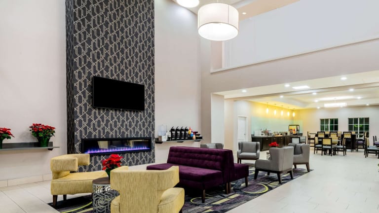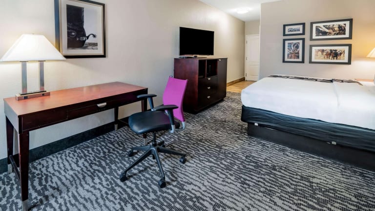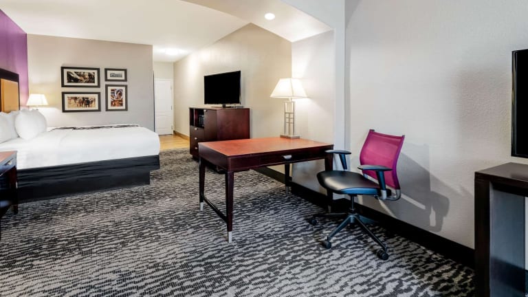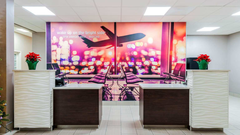 Das La Quinta Inn & Suites Bedford ist ein komfortables Hotel in günstiger Lage nahe dem internationalen Flughafen Dallas-Fort Worth. Die Zimmer sind gut ausgestattet und bieten Annehmlichkeiten wie eine Mikrowelle, einen Kühlschrank und eine Kaffeemaschine. Das Hotel verfügt über einen Innen- und Außenpool sowie ein Fitnesscenter. Ein warmes Frühstück wird täglich serviert und abends können Sie kostenfrei Snacks und Getränke genießen. Das Hotel ist nur eine kurze Fahrt von Six Flags Over Texas und der University of Texas in Arlington entfernt.