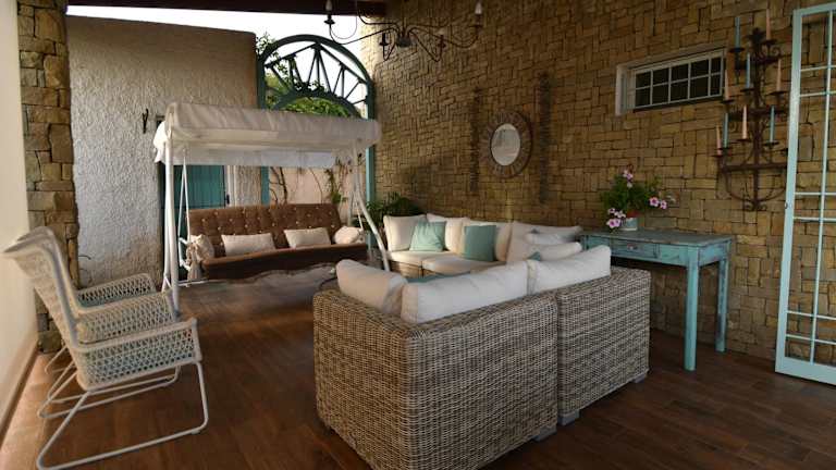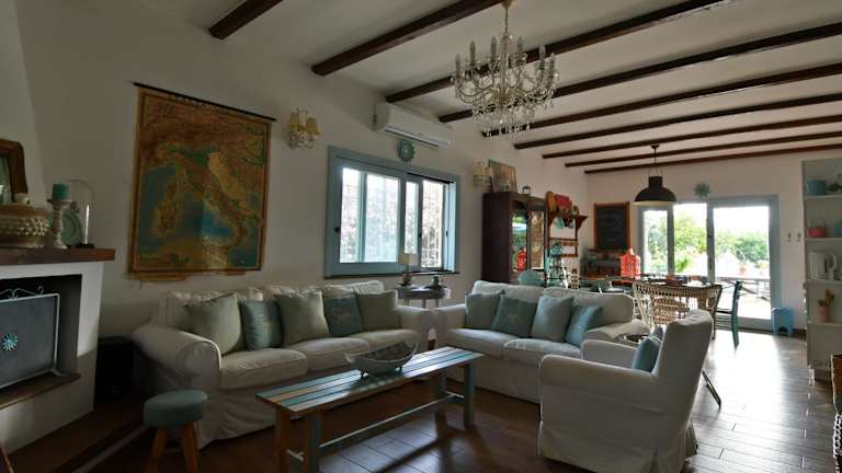 Das Ferienhaus verfügt über eine Klimaanlage und besteht aus 2 Schlafzimmern und einem Wohnzimmer. Es bietet eine voll ausgestattete Küche, die mit Kühlschrank und Kaffeemaschine ausgestattet ist. Des Weiteren sind 2 Badezimmer mit Bidet und Dusche vorhanden. Handtücher und Bettwäsche werden zur Verfügung gestellt.