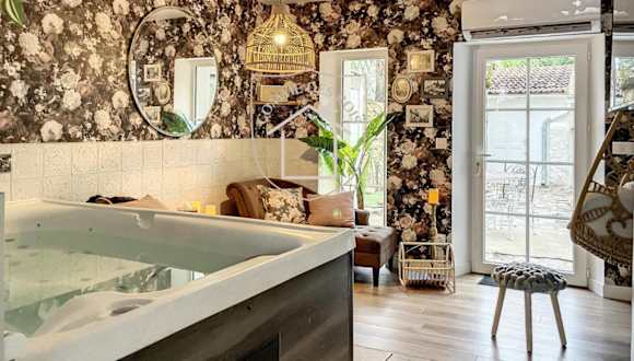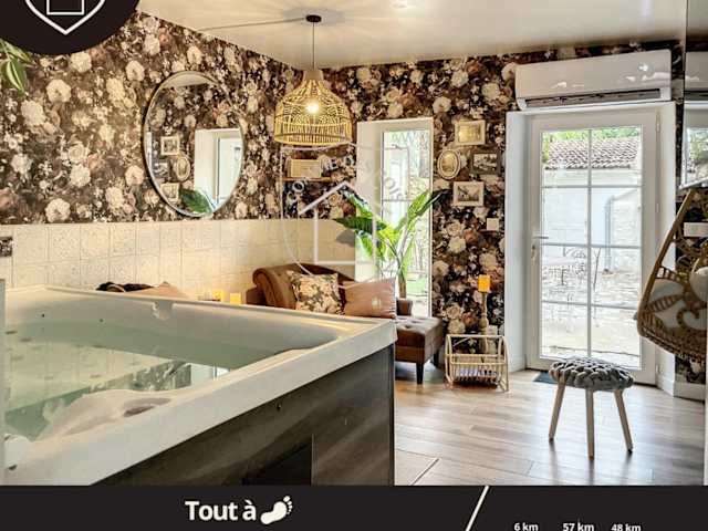 La Romantique des Rois # Jacuzzi # Sauna bietet Unterkünfte mit kostenlosem WLAN, Klimaanlage und Gartenblick. Die Villa verfügt über einen Balkon und ist mit einem Schlafzimmer sowie einer voll ausgestatteten Küche ausgestattet. Zu den Annehmlichkeiten gehören ein Kühlschrank, Geschirrspüler, Flachbild-TV, Sitzbereich und ein Badezimmer mit Dusche.