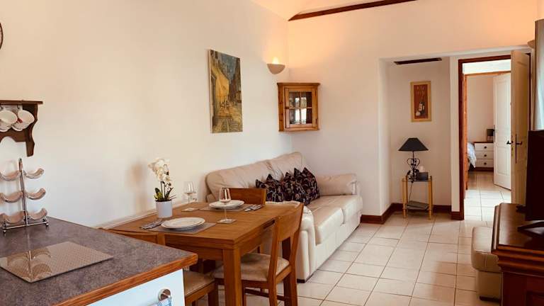 Das Ferienhaus verfügt über ein Schlafzimmer und ein Badezimmer. Zur Ausstattung gehören Bettwäsche, Handtücher, ein Flachbild-TV mit Satellitenkanälen, ein Essbereich sowie eine voll ausgestattete Küche. Eine Terrasse mit Blick auf den Pool ist ebenfalls vorhanden.