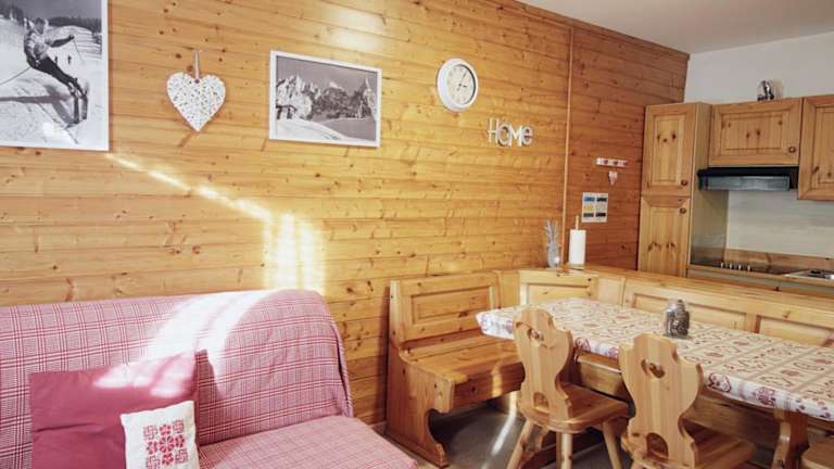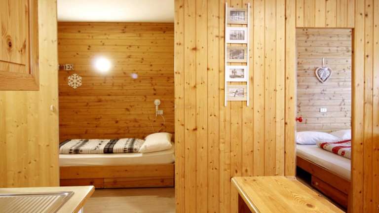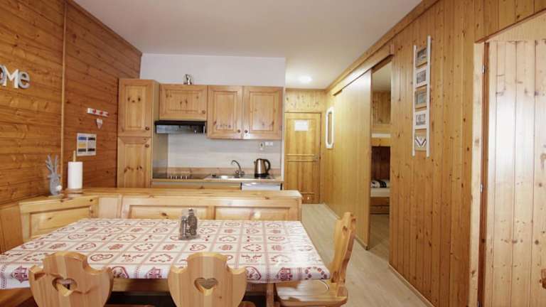 Die Ferienwohnung verfügt über zwei Schlafzimmer, ein Wohnzimmer sowie ein Badezimmer mit Bidet. Eine gut ausgestattete Küchenzeile ist vorhanden, die einen Kühlschrank und eine Mikrowelle umfasst. Weiterhin bietet die Unterkunft einen Balkon mit Blick auf die Berge. Handtücher und Bettwäsche können gegen Aufpreis bereitgestellt werden.