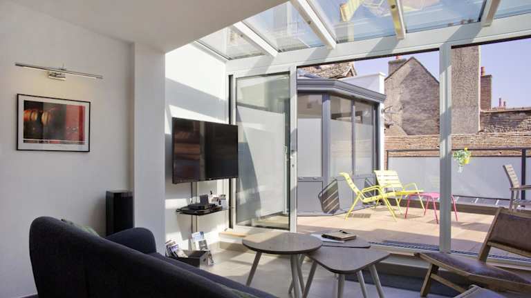 Das Hotel La Terrasse des Climats bietet seinen Gästen eine einzigartige Unterkunft im historischen Zentrum von Beaune. Die Apartments mit eigenen Terrassen sind ideal für Reisende, die eine komfortable und unabhängige Unterkunft suchen. Mit voll ausgestatteten Küchen und Waschmaschinen bieten die Apartments alles, was man für einen längeren Aufenthalt benötigt. Die Lage des Hotels ist unschlagbar, da es nur wenige Gehminuten von den Hospices Civils de Beaune entfernt liegt.