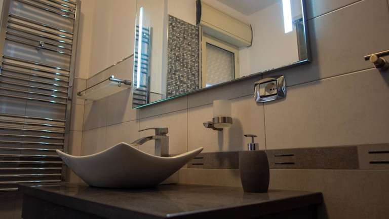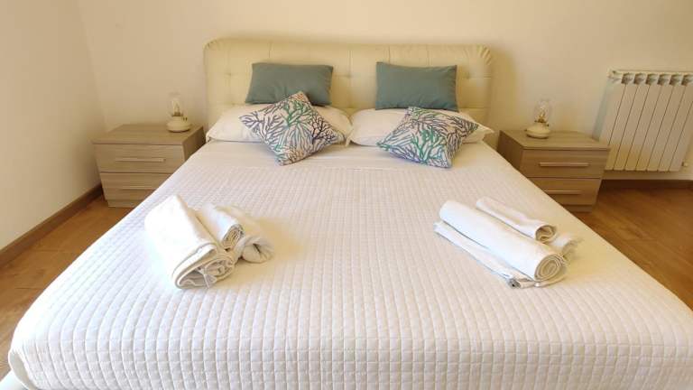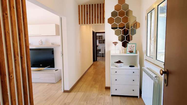 Die Ferienwohnung umfasst zwei Schlafzimmer und ein Wohnzimmer. Die voll ausgestattete Küche ist mit einem Kühlschrank und einer Kaffeemaschine ausgestattet. Das Badezimmer ist mit einem Bidet und einer Dusche versehen. Ein Flachbild-TV mit Satellitenkanälen ist ebenfalls vorhanden.