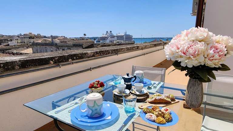 La Terrazza Su Ortigia Seaview Apartment verfügt über eine Gemeinschaftslounge, eine Terrasse und kostenlose Fahrräder. Die Unterkunft bietet kostenfreies WLAN und ist mit einer Gemeinschaftsküche ausgestattet. Die Ferienwohnung ist klimatisiert.
