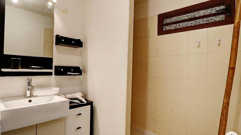 Das klimatisierte Apartment im La Tonnelle - 42m2 - Terrasse - Sainte-Clotilde verfügt über ein gemütliches Schlafzimmer, ein geräumiges Wohnzimmer und eine voll ausgestattete Küche mit einem Kühlschrank und einer Kaffeemaschine. Das Badezimmer ist mit einer Dusche und kostenlosen Pflegeprodukten ausgestattet. Handtücher und Bettwäsche werden im Apartment gestellt, um Ihnen einen angenehmen Aufenthalt zu ermöglichen.