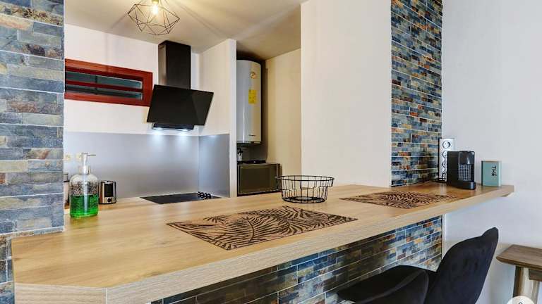 Das La Tonnelle - 42m2 - Terrasse - Sainte-Clotilde bietet eine voll ausgestattete Küche, in der Sie Ihre eigenen Mahlzeiten zubereiten können. Alternativ können Sie auch die umliegenden Restaurants besuchen und die lokale Küche genießen.