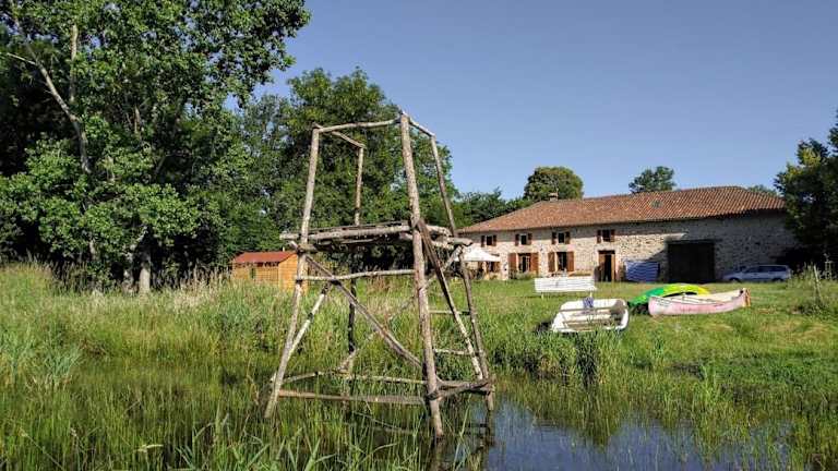 Das La Tribu de Lavaud befindet sich in der charmanten Stadt Saint-Quentin-sur-Charente in der Region Poitou-Charentes. Die Unterkunft liegt etwa 20 km vom Golfplatz La Prèze entfernt und bietet somit eine ideale Lage für Golfliebhaber. Die Umgebung lädt auch zu Outdoor-Aktivitäten wie Wandern und Angeln ein. Der Naturpark Rochechouart und das Schloss Montbrun sind ebenfalls leicht zu erreichen und bieten interessante Ausflugsmöglichkeiten. Der nächstgelegene Flughafen ist der Flughafen Limoges, der ca. 46 km entfernt liegt.