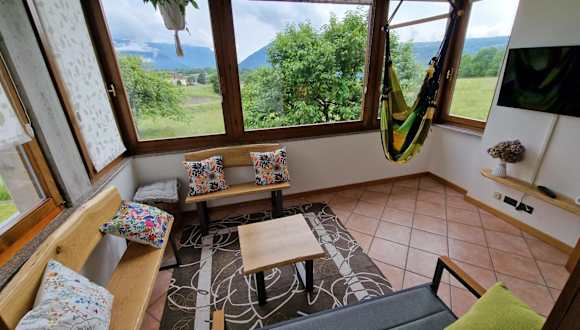 Nach einem Tag in der Natur können die Gäste im Garten oder in der Gemeinschaftslounge entspannen. Die Umgebung lädt zu sportlichen Aktivitäten wie Skifahren und Fahrradfahren ein.