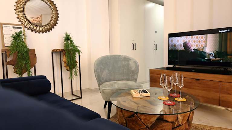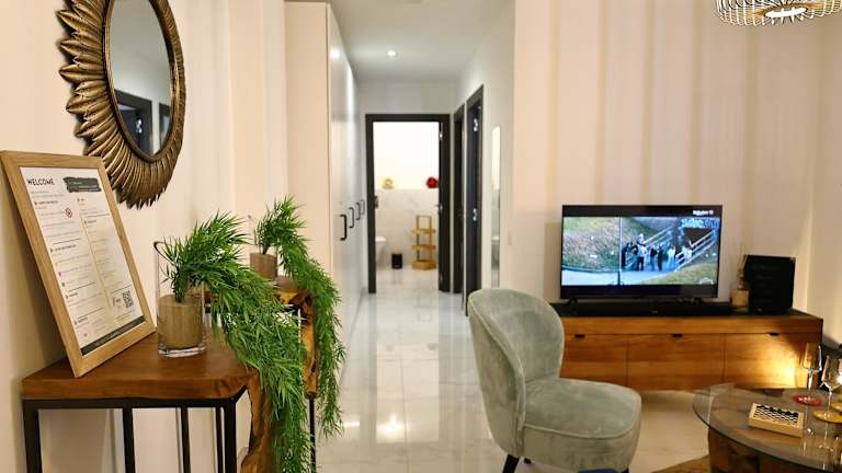 Die Ferienwohnung besteht aus zwei Schlafzimmern, einem Wohnzimmer sowie einer voll ausgestatteten Küche mit Kühlschrank und Kaffeemaschine. Es gibt zwei Badezimmer, ausgestattet mit Duschen und kostenlosen Pflegeprodukten. Handtücher und Bettwäsche werden zur Verfügung gestellt. Die Einheit ist klimatisiert und bietet Einrichtungen wie WLAN und eine Nichtraucherumgebung. Kinderbett für Babys ist verfügbar.