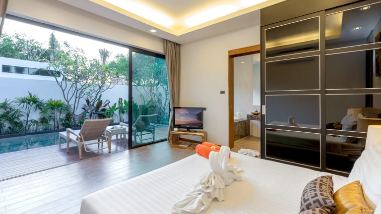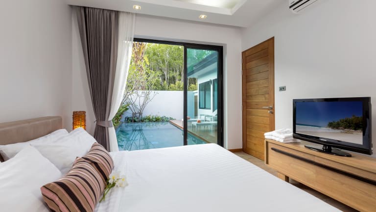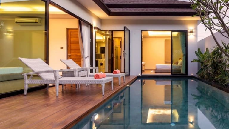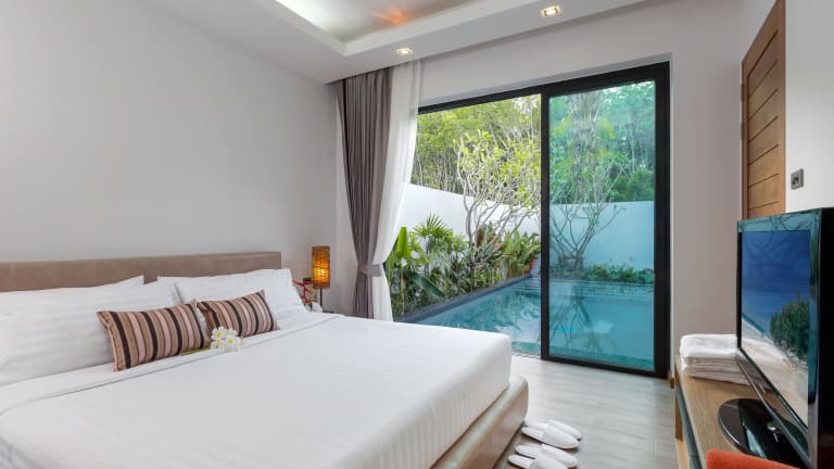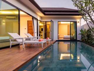 Das La Ville Phuket Pool Villa bietet insgesamt 6 klimatisierte Zimmer, die alle über private Pools und LCD-Fernseher verfügen. Jedes Zimmer ist individuell gestaltet und verfügt über eine eigene Terrasse, auf der Sie die Ruhe und Privatsphäre genießen können. Die Zimmer sind mit modernen Annehmlichkeiten wie einer voll ausgestatteten Küche, einem großen Kühlschrank, einem Backofen und einer Herdplatte ausgestattet. WLAN ist ebenfalls kostenlos verfügbar. Die Badezimmer sind geräumig und verfügen über Komfortbadewannen und separate Regenduschen.