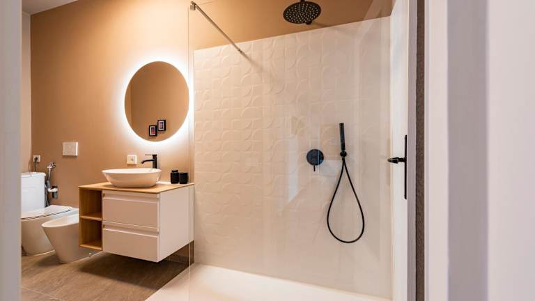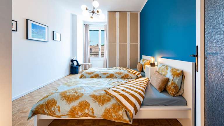 Die Ferienwohnung bietet zwei Schlafzimmer, ein Wohnzimmer und eine voll ausgestattete Küche mit Kühlschrank und Kaffeemaschine. Ein Badezimmer mit Bidet und Dusche ist ebenfalls vorhanden. Handtücher und Bettwäsche sind inbegriffen.