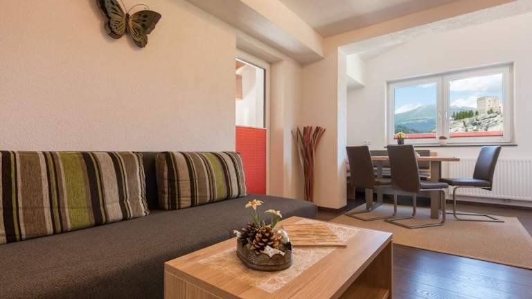 Das Ladis Living ist eine ideale Unterkunft in Ladis, die mit einem wunderschönen Garten und einer Sonnenterrasse lockt. Die Nähe zur Sonnenbahn Ladis-Fiss ermöglicht Ihnen einen bequemen Zugang zu den umliegenden Aktivitäten und Attraktionen. Die Unterkünfte sind gemütlich eingerichtet und verfügen über einen Essbereich sowie einen Sitzbereich mit einem Flachbild-TV. Einige Unterkünfte bieten zudem eine Terrasse oder einen Balkon mit herrlichem Bergblick. Die gut ausgestattete Küche ermöglicht es Ihnen, Ihre eigenen Mahlzeiten zuzubereiten. Handtücher werden gestellt und auf Anfrage erhalten Sie frische Brötchen jeden Morgen. Zusätzlich bietet das Ladis Living einen kostenlosen Shuttleservice zum Flughafen Kranebitten, der 57 km entfernt liegt.