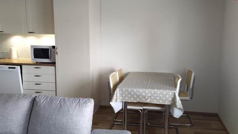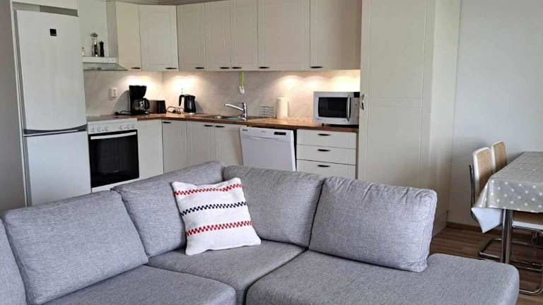Die Ferienwohnung verfügt über ein Schlafzimmer, ein Wohnzimmer, einen Flachbild-TV sowie eine gut ausgestattete Küche mit Kühlschrank und Geschirrspüler. Das Badezimmer ist mit einer Dusche ausgestattet.
