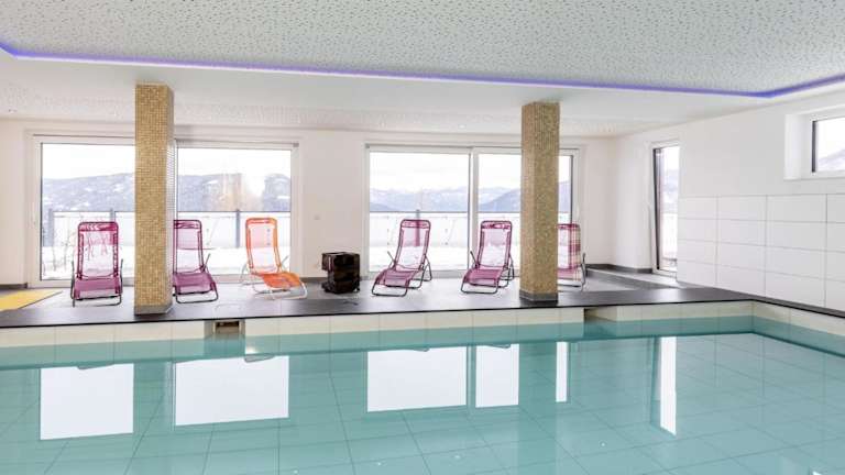 Die Gäste haben die Möglichkeit, im Innenpool zu schwimmen oder Ski zu fahren.