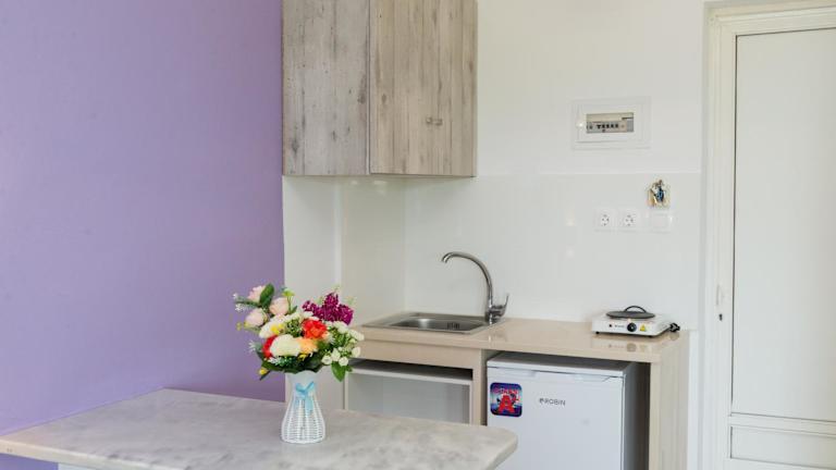 Die Studios sind klimatisiert und bieten einen Balkon sowie eine Küchenzeile mit Kühlschrank und Kochfeld. Das Bad ist mit einer Dusche ausgestattet und ein TV ist ebenfalls vorhanden. Kostenlose Privatparkplätze sind ebenfalls vorhanden.