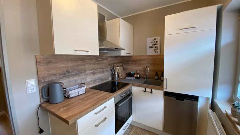Die Unterkünfte verfügen über Parkettböden und sind mit einem Satelliten-Flachbild-TV sowie einer ausgestatteten Küche, einschließlich Kühlschrank, Geschirrspüler, Ofen, Mikrowelle, Kaffeemaschine und Wasserkocher ausgestattet. Jedes Zimmer bietet ein eigenes Badezimmer mit Dusche. Allergikerfreundliche Zimmer sind ebenfalls verfügbar.