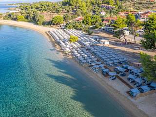 The Lagomandra Hotel and Spa is built in the area of Lagomandra, Sithonia, 6 km from picturesque and cosmopolitan Neos Marmaras, just next to the beautiful beach of Lagomandra, whose many natural treasures you must discover. The enchanting beach of Lagomandra, next to Neos Marmaras, Sithonia, Chalkidiki The beach of Lagomendra is a Paradise on earth, between Neos Marmaras and Nikitis. Next to the beach there is a pine forest offering a breath of coolness and natural wealth. The beach is divided into two parts by a small cape. The northern part of the beach is more organized, with umbrellas and reclining chairs for the visitors and a Beach Bar where you can cool down during your swim. The southern part is the ideal place to enjoy sea sports. The whole beach is covered by fine sand and its waters are crystal clear and reflect the sea bottom. The unique natural landscape of Sithonia, Chalkidiki The natural landscape of Sithonia is really very interesting and diverse. The beaches and coastline are particularly attractive while along the coastline you come across bushy and tree vegetation. More specifically, in many areas there are pine forests offering high aesthetic and ecological value. Furthermore, the holm oaks and strawberry trees breathe a feeling of respect for the environment as well as provide a big oxygen breath that unfortunately tends to get lost. The Lagomandra Beach is characterized by many as an oasis, since the fine golden sand and the green of nature offer the visitor a different and unique feeling. Culture and History of Sithonia in Chalkidiki The Sithonia Peninsula in Chalkidiki has a rich archaeological and historical background. The first settlers of the Peninsula were the Chalkideans at the end of the 8th century B.C. The modern visitor of Chalkidiki should not omit a visit to the Petralona Cave with its Anthropological Museum at a distance of just one (1) km from the eponymous village at the Thermaikos Gulf, famous for its rich prehistoric findings of significant paleontological value and the impressive stalactite decorations. The Museum of Traditional Vessels and Tools and the Folklore Museum of Vithynia at Nea Moudania offer a gallery of significant exhibits of specialized interest. For anyone interested in archaeological quests, the Archaeological site of Kallithea, ancient Skioni and ancient Mendi at the peninsula of Kassandra, the renovated archaeological site of Olynthos with the Archaeological Museum at Toronaios, and some fortified members of Ancient Toroni in Sithonia, at the locations of Vigla and Lykithos castle are some of the most important places of historical interest in the area. Ancient Stageira, the homeland of Aristotle, on the peninsula of Liotopi, on the eastern coast of Chalkidiki and the Archaeological Museum of Polygyros are perhaps the most significant archaeological sights of the prefecture. The history of Sithonia, Chalkidiki According to the historians, the history of Sithonia seems to start from the antiquity. Various archaeological findings testify that the area has been inhabited since prehistoric times. Specifically, there were settlements in the contemporary area of Elia, Agios Georgios, Kastri and Lagomandra during the Classical and Roman periods. Sithonia, as mythology has it, took its name from Sithon, king of the Thracian tribe of the Odomontes, son of Poseidon (god) and Ossa. Sithones, according to the historians, was a tribe of Phrygian origin and were settled in the 8th century B.C. Important cities of Sithonia in antiquity were: Sermyli, Fyskella, Singos, Parthenopolis, Galipsos, Toroni, Derra, Ampelos, Sarti, Piloros, Assa and Sithoni.