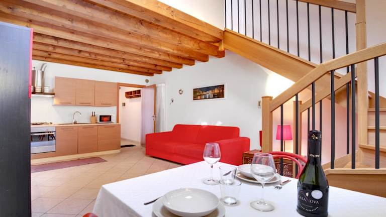 Das Lagoon Apartment liegt im Stadtteil Cannaregio in Venedig, nur 5 Gehminuten vom Bahnhof Santa Lucia entfernt. Diese zentrale Lage ermöglicht es Ihnen, die Stadt bequem zu erkunden und die Sehenswürdigkeiten in der Nähe zu besuchen. Die Rialtobrücke und das Museum Gallerie dell'Accademia liegen etwa 2 km entfernt und sind leicht zu erreichen.