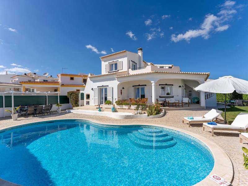 Die Villa in Lagos - Pool & Garden verfügt über 4 Schlafzimmer, ein Wohnzimmer mit Flachbild-TV und eine gut ausgestattete Küche mit Kühlschrank und Geschirrspüler. Es sind 4 Badezimmer mit Dusche vorhanden. Handtücher und Bettwäsche werden bereitgestellt.