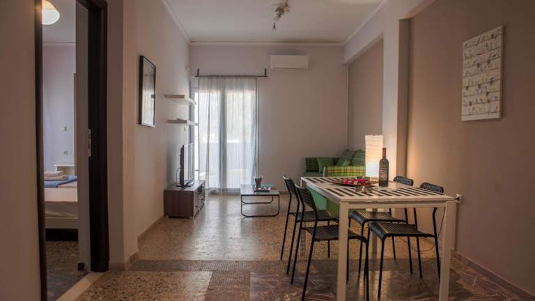 Die klimatisierten Unterkünfte im Lak Alepochori Homes verfügen über einen eigenen Balkon, der einen atemberaubenden Blick auf das Meer bietet. Die Apartments sind modern eingerichtet und verfügen über einen komfortablen Sitzbereich sowie einen Flachbild-TV. Die voll ausgestattete Küche umfasst einen Kühlschrank und ein Kochfeld, sodass Sie Ihre eigenen Mahlzeiten zubereiten können. Das private Badezimmer ist mit einer Dusche und kostenlosen Pflegeprodukten ausgestattet.