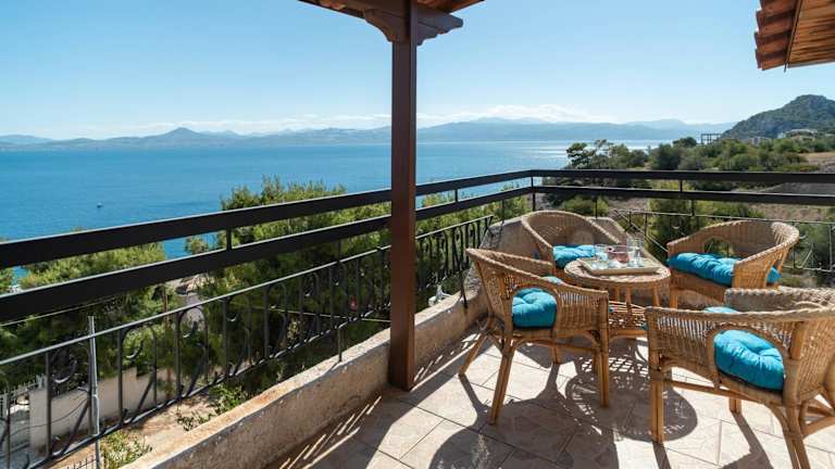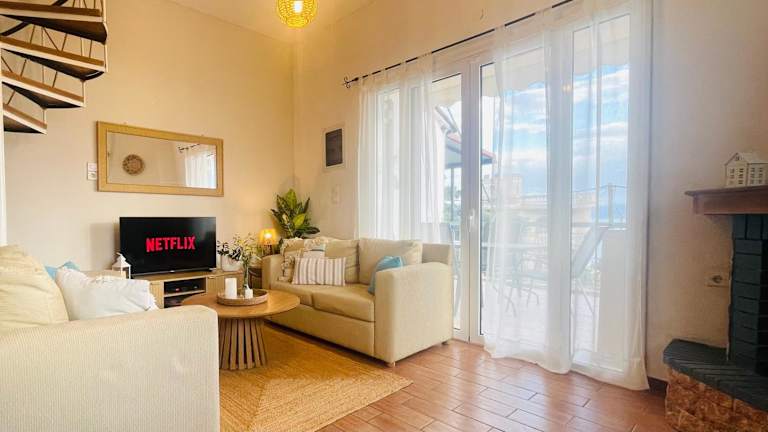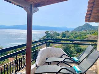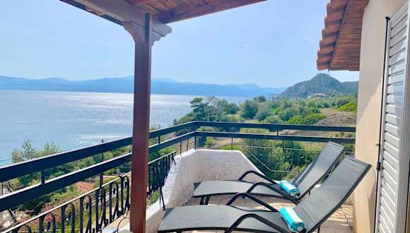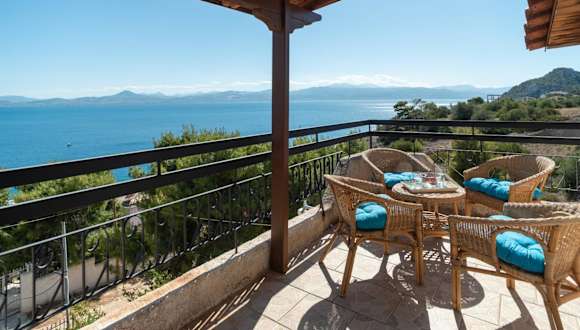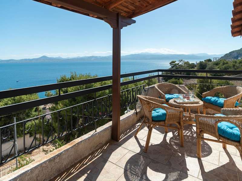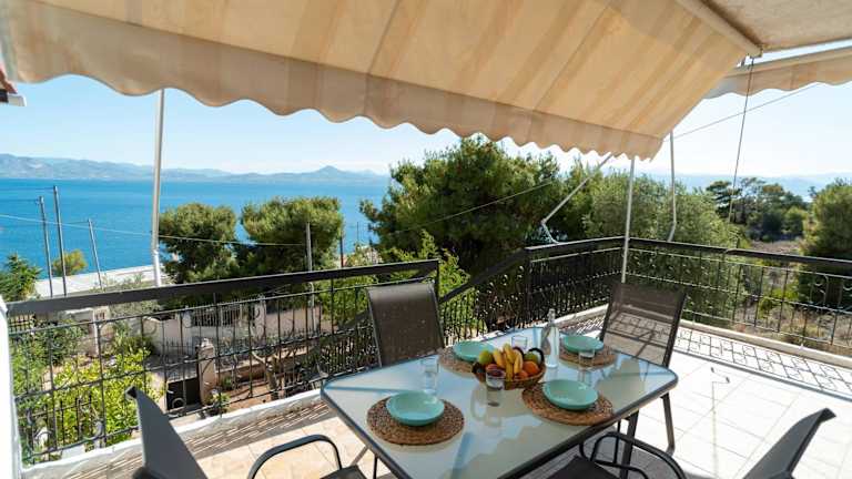 Die Unterkunft befindet sich in Vouliagmeni-See und bietet einen Blick auf das Meer sowie Zugang zu einem Garten und einer Terrasse.
