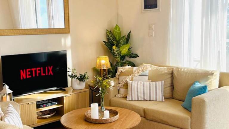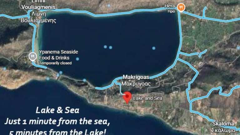 Lake and Sea ist ein Ferienhaus mit Klimaanlage, das über zwei Schlafzimmer, ein Wohnzimmer sowie eine voll ausgestattete Küche verfügt. Es bietet zudem einen Balkon mit Gartenblick.