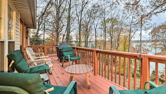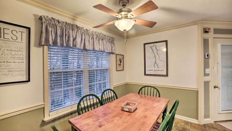 Das Lake Barkley Home with Fire Pit and Private Dock! ist ein Ferienhaus im Erdgeschoss, das über drei Schlafzimmer verfügt. Es ermöglicht den Gästen einen herrlichen Seeblick und bietet einen komfortablen Aufenthalt mit verschiedenen Annehmlichkeiten.
