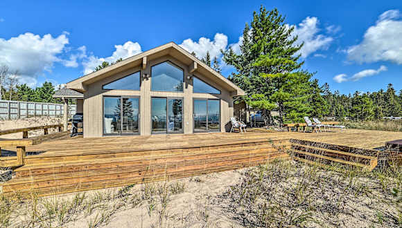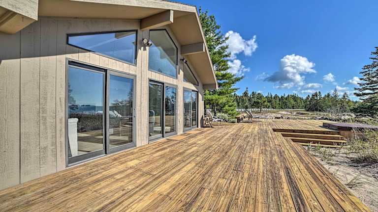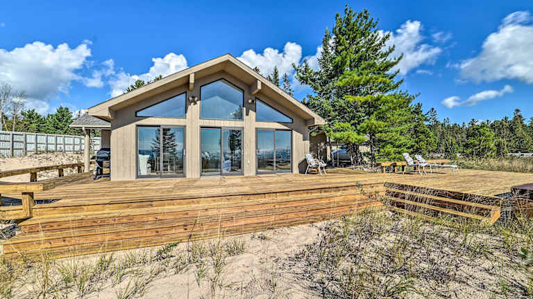 Das Lake Huron Home mit Deck, direktem Strandzugang! liegt in De Tour Village, einer idyllischen Küstenstadt. Die Umgebung bietet eine atemberaubende Naturkulisse mit Blick auf den Lake Huron. Genießen Sie lange Spaziergänge am Strand und erkunden Sie die malerische Landschaft. Der internationale Flughafen Chippewa County ist bequem zu erreichen, was die Anreise zum Ferienhaus erleichtert.