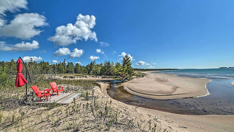 Verbringen Sie einen unvergesslichen Aufenthalt im Lake Huron Home mit Deck, direktem Strandzugang! Dieses Ferienhaus in De Tour Village bietet Ihnen alle Annehmlichkeiten, die Sie für einen erholsamen Urlaub benötigen. Genießen Sie den kostenfreien WLAN-Zugang und entspannen Sie sich in den komfortablen Zimmern. Die voll ausgestattete Küche ermöglicht es Ihnen, Ihre eigenen Mahlzeiten zuzubereiten. Handtücher und Bettwäsche werden gestellt, um Ihren Aufenthalt so angenehm wie möglich zu gestalten. Der internationale Flughafen Chippewa County ist nur 56 km entfernt.