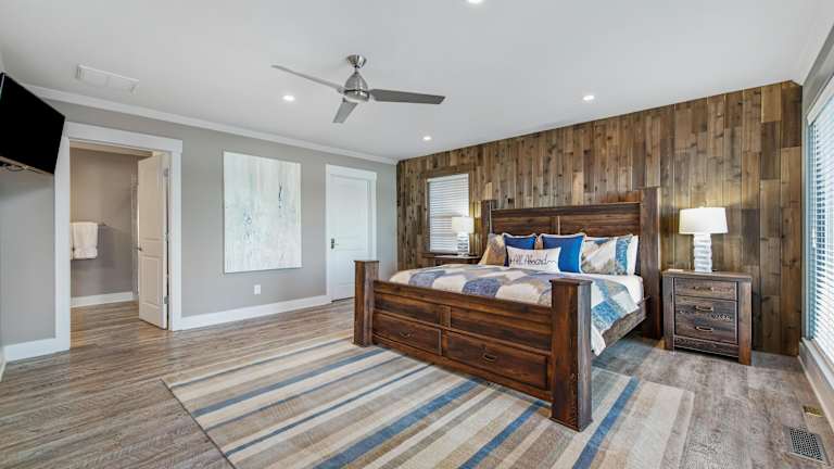 Das klimatisierte Ferienhaus im Lake Norman Breakaway verfügt über 3 Schlafzimmer und bietet somit ausreichend Platz für größere Gruppen oder Familien. Das Wohnzimmer ist geräumig und gemütlich eingerichtet, und die voll ausgestattete Küche bietet Ihnen alle Annehmlichkeiten, die Sie für einen angenehmen Aufenthalt benötigen. Die 4 Badezimmer sind modern und komfortabel, und eines davon verfügt sogar über einen Whirlpool, in dem Sie sich nach einem ereignisreichen Tag entspannen können. Handtücher und Bettwäsche werden im Ferienhaus gestellt, sodass Sie sich um diese Dinge keine Sorgen machen müssen.